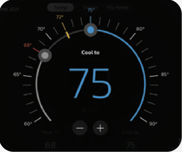Tap either of the "Heat To" or "Cool To" icons where a detailed horseshoe dial will allow you to select the perfect heating or cooling temperature setpoint.