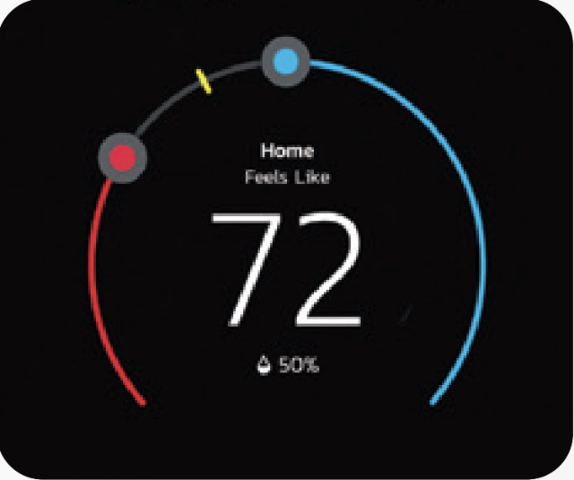 Touch the red circle to adjust the temperature in heating mode and the blue circle to adjust it in cooling mode. If Perfect Temp* is enabled, you’ll see one dial that allows you to set your desired temperature.